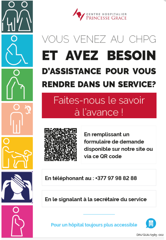 Le Centre Hospitalier Princesse Grace dispose d’équipements pour les personnes à mobilité réduite, à savoir :