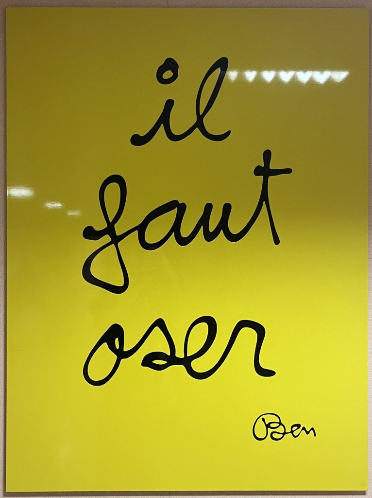 Benjamin Vautier, plus connu sous son simple surnom Ben, est un artiste célèbre pour ses œuvres reconnaissable entre mille et qui signe une pensée caligraphié en blanc, sous fond de couleur.